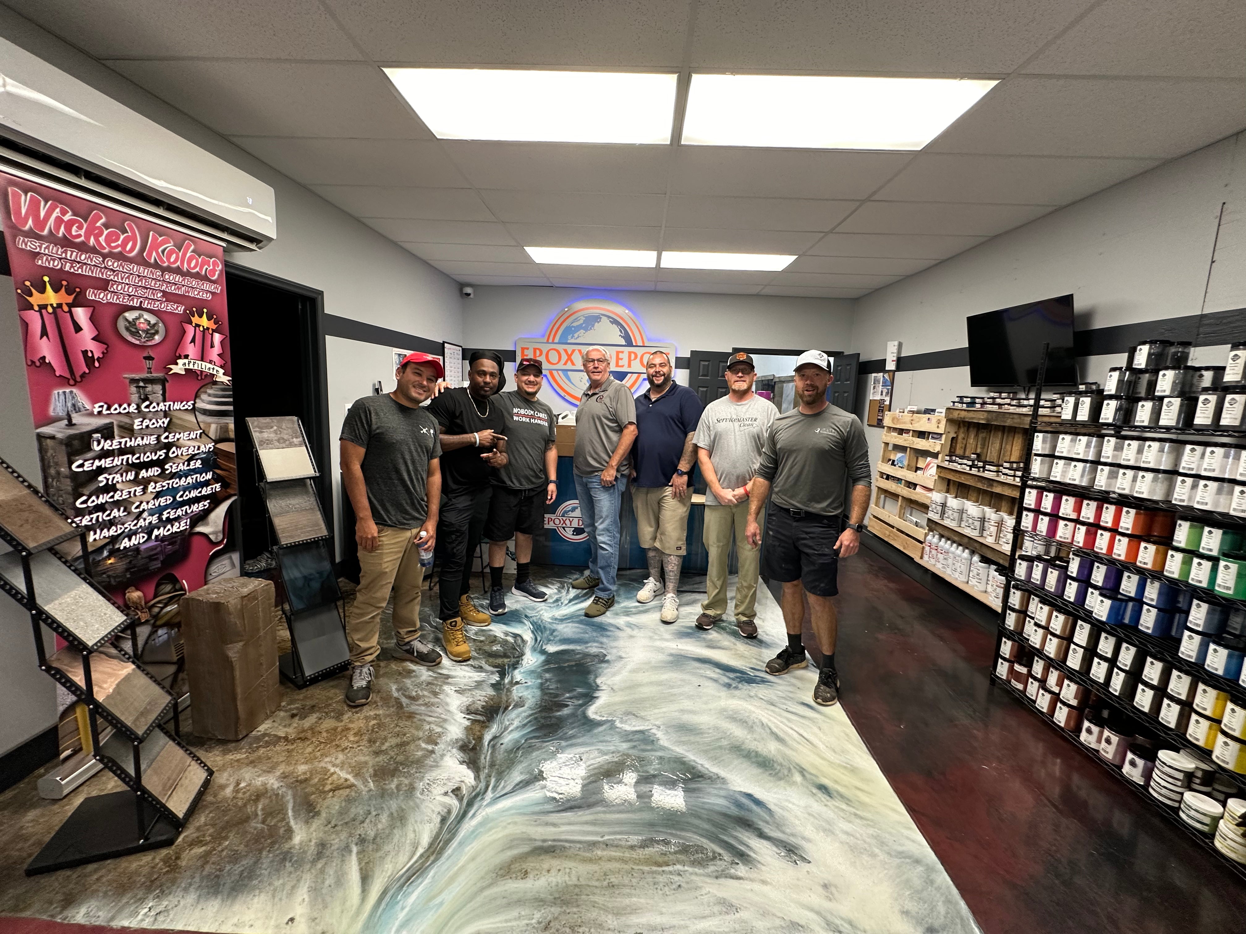 A curated look at hands‑on epoxy training and real‑world installations, including seamless cove base work, metallics, flakes, and professional application techniques.